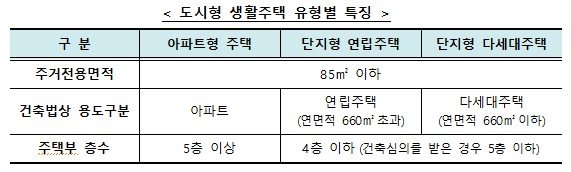 아울러, 도시형 생활주택의 유형별 특징을 보다 명확히 나타낼 수 있도록 기존 '소형 주택'의 명칭을 '아파트형 주택'으로 새롭게 분류한다.
