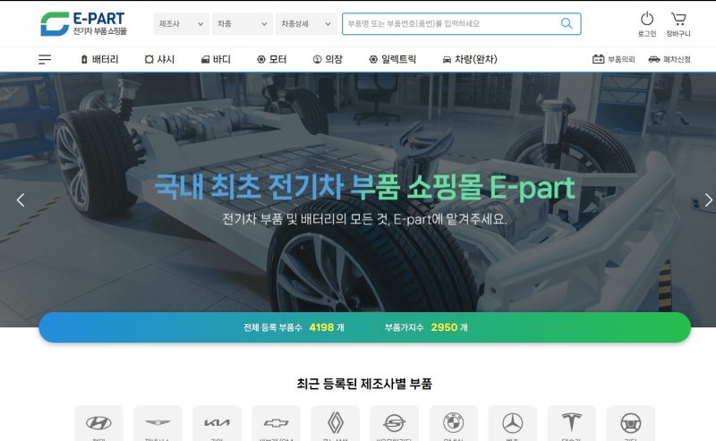 Epart는 전기차 재사용 부품 전문 쇼핑몰로 국내 자동차 부품 시장에 새로운 패러다임을 제시하겠다는 비전으로 만들어졌다.
