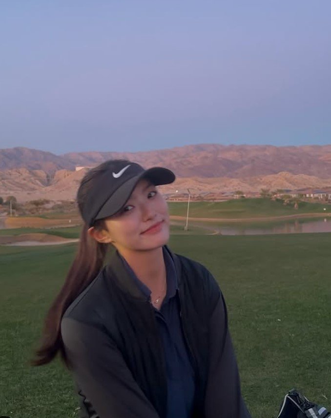 이재아는 미국의 한 골프장에서 셀카를 찍었다. 뚜렷한 이목구비와 청순한 미모를 자랑했다.