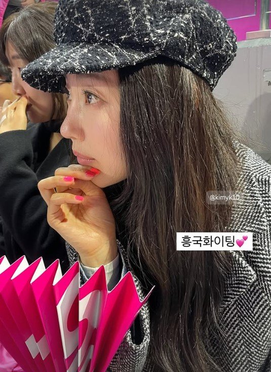 김사랑은 22일 소셜미디어에 "흥국 화이팅"이라고 적고 사진을 게재했다.