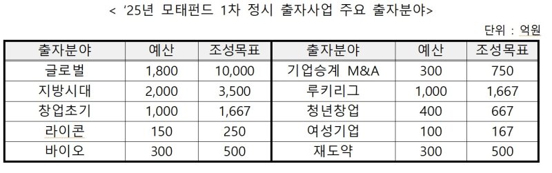 2025년 모태펀드 1차 정시 출자 공고