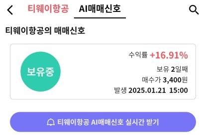 | #티웨이홀딩스 | 1.16% | [관망중] |