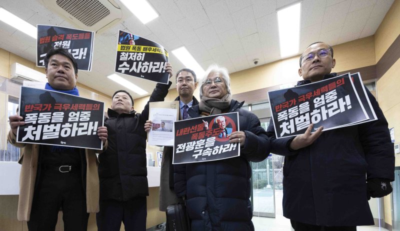 김민웅 촛불행동 상임대표는 "전광훈 목사는 광화문에서 서부지법으로 집결하지 않으면 형사처벌 받게 하겠다는 극언을 했다"며 "이는 극단적 폭력을 교사한 엄중한 행위라 할 수밖에 없다"고 말했다.