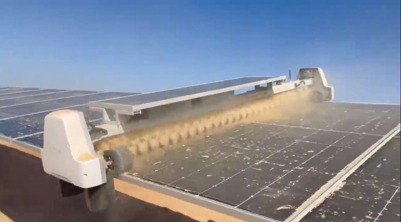 사막에 위치한 탓에 태양광 패널에 먼지가 쌓이면 발전효율이 떨어질 수 있다는 점은 로봇으로 해결했다. 발전소 내 각 패널에는 로봇이 설치돼 있었다. 이 로봇은 역시 태양광으로 움직이며, 패널 위에 쌓이 먼지를 털어냈다.