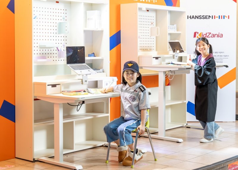 팝업 기간 키자니아를 방문한 어린이들은 '모션데스크 높이 조절 챌린지’에 참여할 수 있다. 안대를 착용하고 손끝의 감각만으로 한샘 조이S 2 모션데스크를 조절해 보는 체험형 게임이다. 참가한 모든 어린이에게 키자니아에서 사용할 수 있는 전용 화폐를 제공한다.