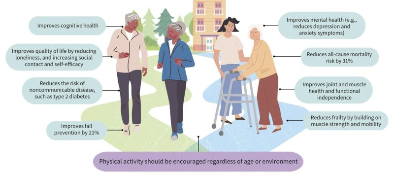 캐나다 온타리오 웨스턴대 제인 손턴 교수팀은 27일 의학 전문지 캐나다 의학 협회 저널(CMAJ)에서 신체 활동과 노년기 건강에 관한 대규모 연구 메타 분석에서 이런 결과를 얻었다며 노년기 신체 활동을 많이 할수록 잠재적으로 수명을 연장할 수 있고 삶의 질도 높일 수 있다고 강조했다.