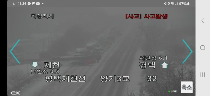 (안성=연합뉴스) 권준우 기자 = 28일 오전 11시 20분께 경기 안성시 평택제천고속도로 서안성IC에서 남안성IC 사이 도로에서 버스가 눈길에 미끄러지는 사고가 발생했다.