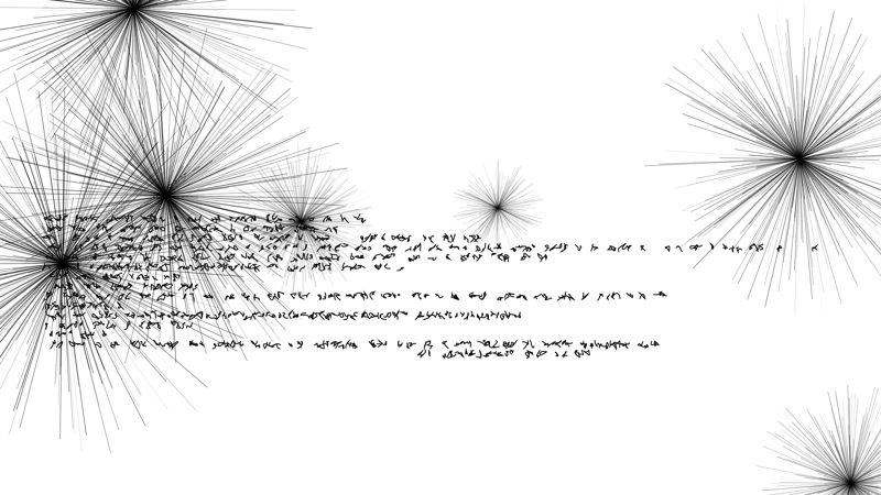 김다슬은 수집한 200편 이상의 신문기사를 크리에이티브 코딩의 선택적 인풋으로 활용한다. 이를 통해 읽을 수 없는 글자와 시각화된 형상들을 만들어낸다. 이들은 다시한번 영상, 이미지, 회화, 조각 등 다양한 매체로 전환돼 보여진다.