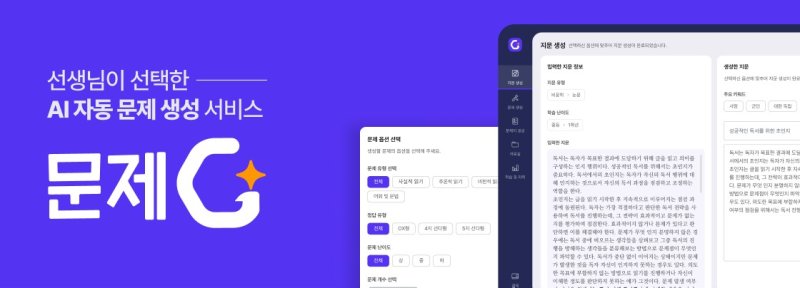 문제G는 생성형 AI를 기반으로 국어 지문과 문제·문제지를 생성하는 서비스로, 교사들이 직접 보유한 글감을 입력하면 유사 지문을 생성할 수 있으며 다양한 유형의 문제를 만들 수 있는 것이 특징이다.