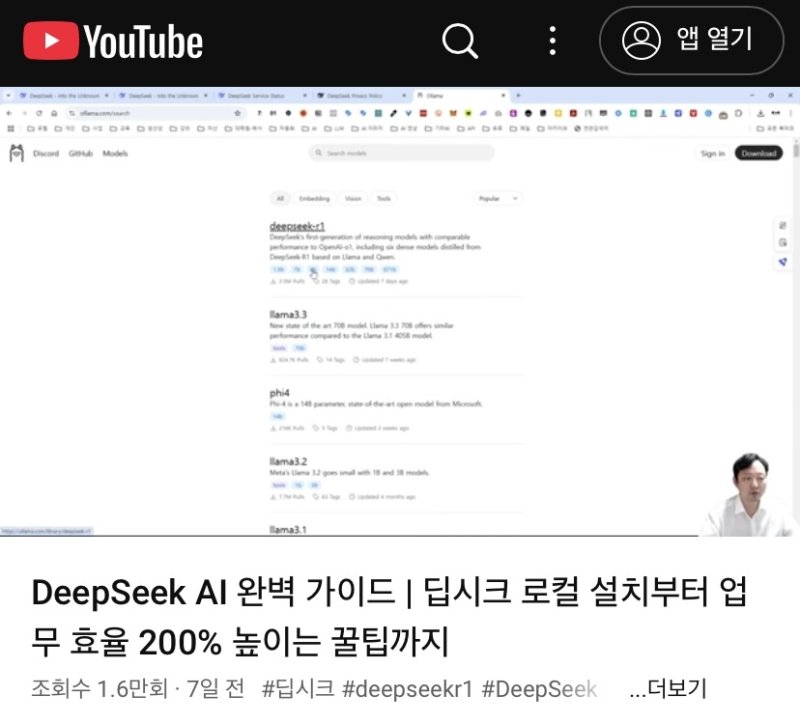 7일 정보기술(IT) 업계에 따르면 유튜브에 '딥시크'를 검색한 결과 '딥시크 탈옥', '딥시크 로컬 설치' 등 개인 PC에 딥시크 모델의 소스코드를 설치하는 법을 안내한 영상이 뜬다. 영상들이 게시된 기간은 일주일 남짓이지만 조회수는 1만 회를 돌파했다.