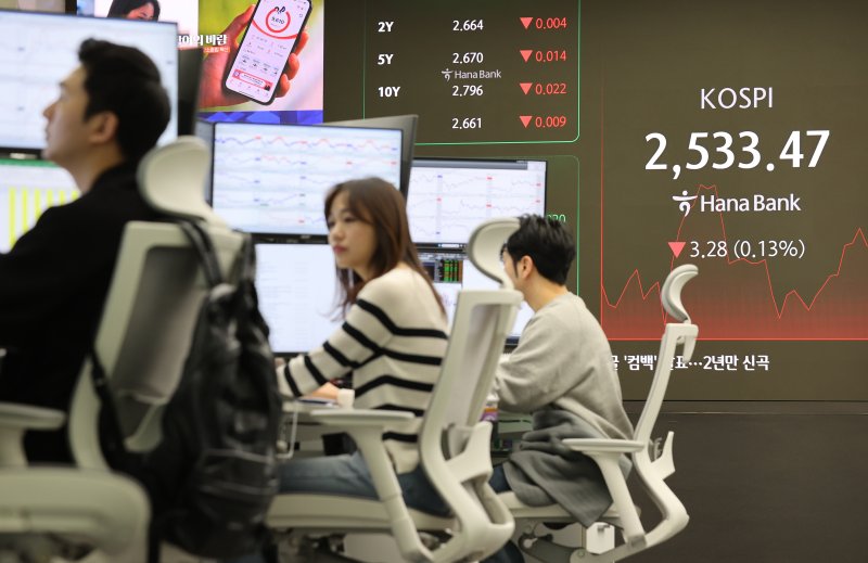 [파이낸셜뉴스] 7일 코스피지수가 4거래일만에 약세로 돌아서며 2530선에서 거래가 이뤄지고 있다.