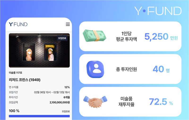 이유강 와이펀드 대표는 “미술품 한 점에 20억 이상의 자금이 몰린 것은 국내서 전례 없는 일”이라며 “미술품이 단순 감상의 대상이 아니라, 안정적이고 신뢰할 수 있는 금융 자산으로 자리 잡고 있음을 보여준다”고 말했다.