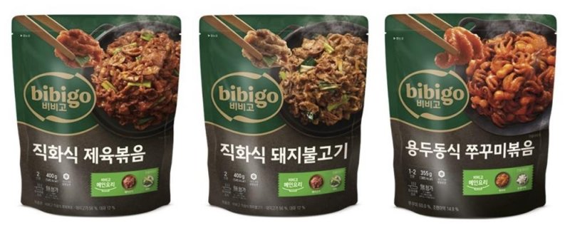 ▲ CJ제일제당은 비비고 메인요리 제품으로 '직화식 제육볶음', '직화식 돼지불고기', '용두동식 쭈꾸미볶음'을 출시했다. 다른 재료를 준비하지 않고 프라이팬에 볶으면 5분 만에 요리를 완성할 수 있는 제품이다.