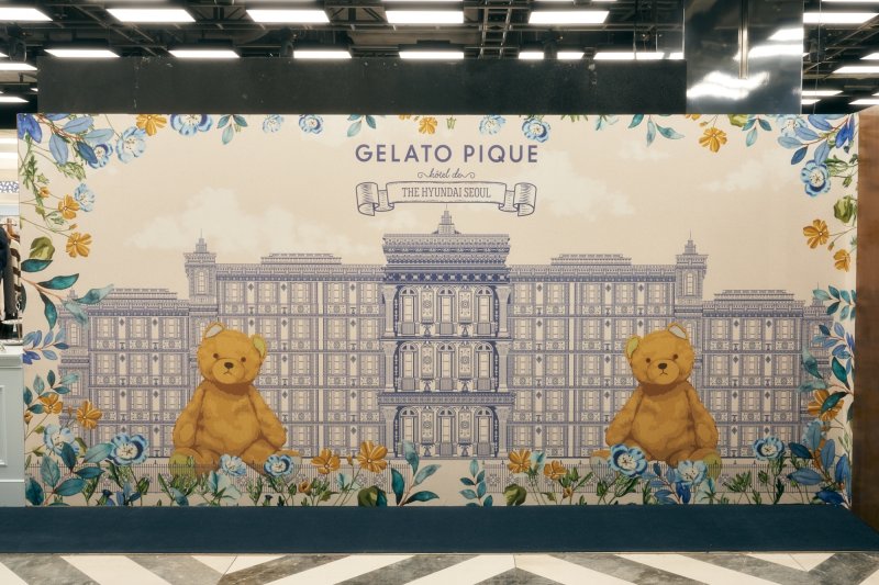 7일 <뉴스1>이 찾은 젤라또피케 팝업스토어는 호텔의 모습을 방불케했다. 영화 '그랜드부다페스트호텔'을 연상케하는 입구로 들어서자 포근한 느낌의 라운지웨어 제품들이 눈길을 사로잡았다.