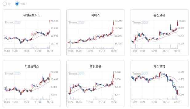 ※ [로봇] 이슈 관련 종목 : 유일로보틱스, 씨메스, 유진로봇, 티로보틱스, 휴림로봇