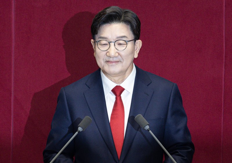 권 원내대표는 "12·3 비상계엄 선포, 대통령 탄핵소추·구속 기소까지 국가적으로 큰 위기를 겪고 있다"며 "집권 여당으로서 책임을 깊이 통감한다"고 고개를 숙이며 연설을 시작했고, 우선적으로 윤석열 정부의 3년간의 성과를 설명했다.