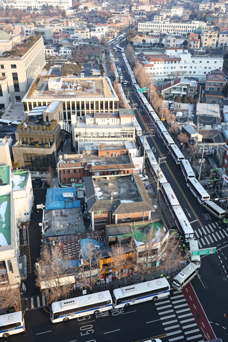 경찰은 서울서부지법 사태와 같은 상황이 벌어질 수 있다고 보고 헌재 주변을 경찰버스 차벽으로 둘러쌌다. 월담 방지를 위한 조치다. 담장이 낮은 구역엔 병력을 배치했다. 경찰은 또 헌재를 지나는 이들의 신분을 일일이 확인했다. 실제 안국역 2번 출구에서 헌재 정문까지 140여m를 걷는 동안 모두 3차례 경찰의 신분증 확인 요구를 받았다. 기자증과 주민등록증을 함께 보여주며 기자라는 신분을 증명해야 통행이 가능했다. 경찰 관계자는 "지난달 19일 서부지법 폭동 당시 윤 대통령 지지자들이 담을 넘어 법원 경내를 침입한 것과 같은 사태를 막기 위한 것"이라고 설명했다.