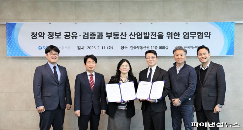 [파이낸셜뉴스] 한국자산매입은 지난 11일 한국부동산원과 청약 정보 공유·검증과 부동산 산업 발전을 위한 업무협약(MOU)를 체결했다고 12일 밝혔다. 이번 협약을 통해 양 기관은 부동산 데이터의 정확성을 높이고 청약 정보를 보다 신뢰성 있게 제공하기 위한 협력 체계를 강화할 예정이다.