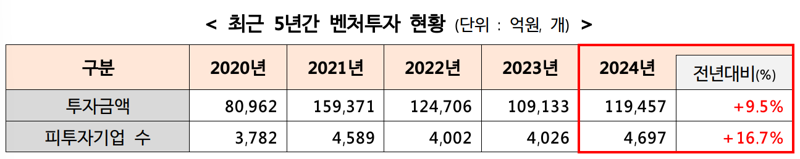 벤처투자 유치 기업 수 4697개...집계 이래 역대 최대