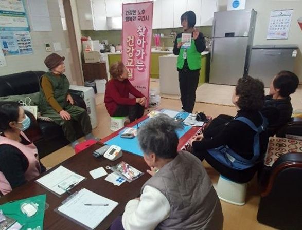 【파이낸셜뉴스 경기=김경수 기자】 경기 구리시는 지역 내 경로당을 이용하는 어르신을 대상으로 전문적 건강 관리 서비스와 건강 교육을 제공해 노인 복지 향상에 힘쓰고 있다.
