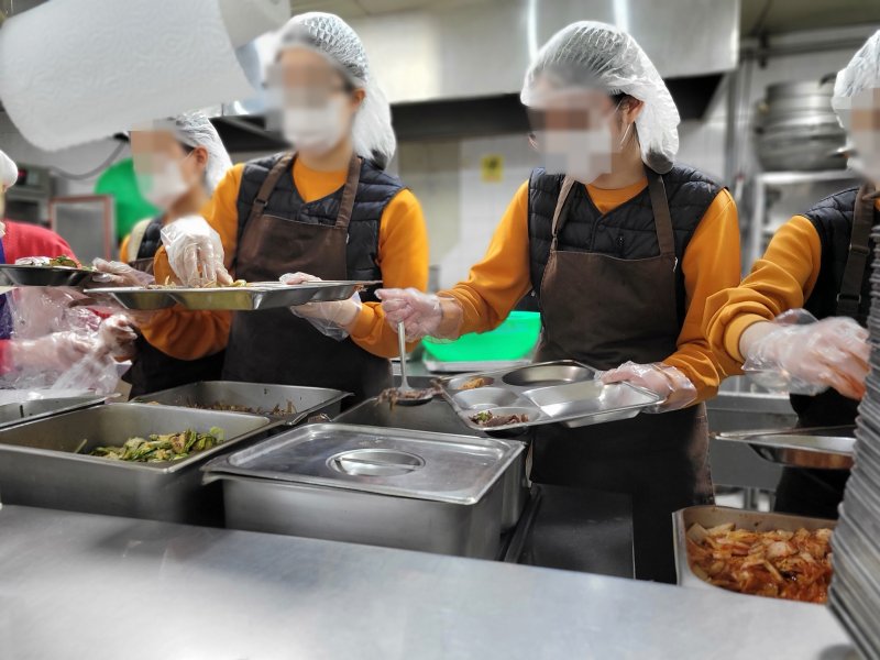 [안양=뉴시스] 변근아 기자 = 법무부 정심여자중고등학교(안양소년원) 학생들로 구성된 정심봉사단이 급식 봉사를 진행했다.