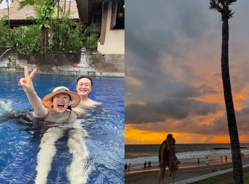 공개된 사진에는 인도네시아 발리에서 즐거운 시간을 보내고 있는 심진화, 김원효 부부의 모습이 담겼다.