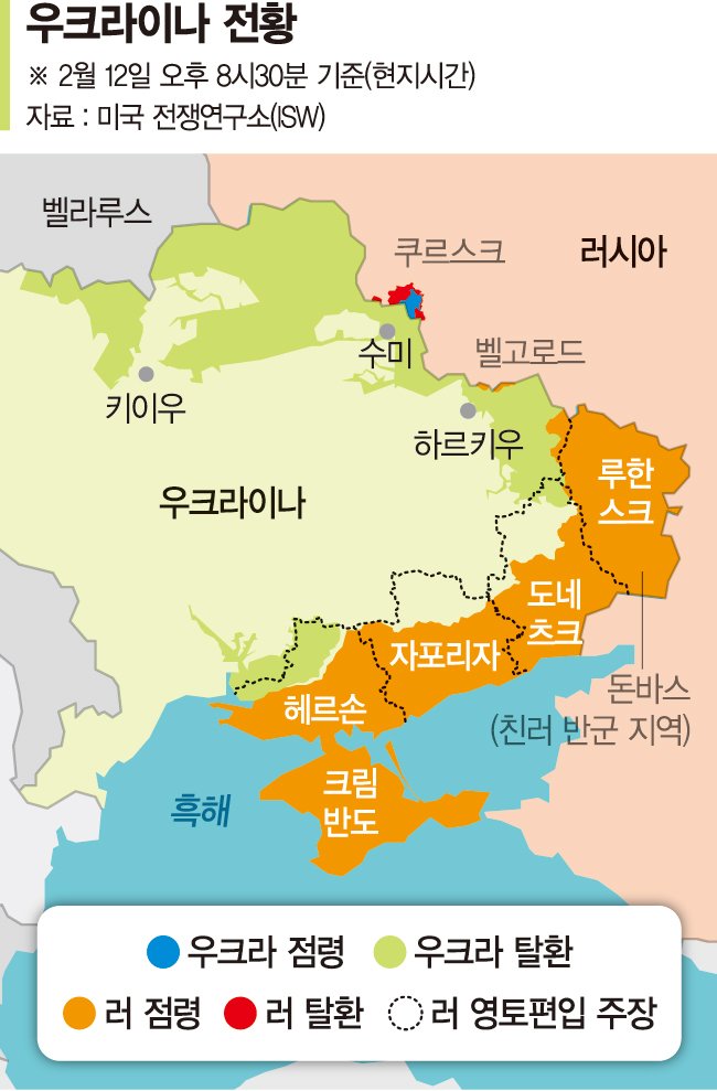 12일(현지시간) 피트 헤그세스 미국 국방장관은 벨기에 브뤼셀의 나토 본부에서 우크라의 나토 가입이 협상의 '현실적인 결과물'이 아니라고 밝혔다. 헤그세스는 "우리는 우크라가 2014년 이전 국경으로 돌아가는 것은 불가능한 목표라는 것을 인식해야 한다"고 말했다. 같은 날 트럼프 역시 우크라의 2014년 이전 영토 회복에 대해 "그럴 가능성이 없어 보인다"면서 "일부는 되돌아올 것"이라고 밝혔다.