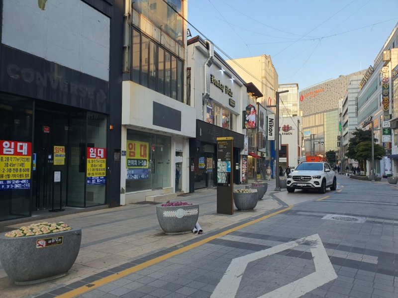 다음 날인 11일 부산 최대 번화가인 서면도 크게 다르지 않았다. 공실률이 상대적으로 낮은 1번가 매디컬 거리에서도 통째로 비어 있는 건물이 있었다. 접근성이 좋은 지하도상가 바로 앞 건물마저 임대 상태였다.