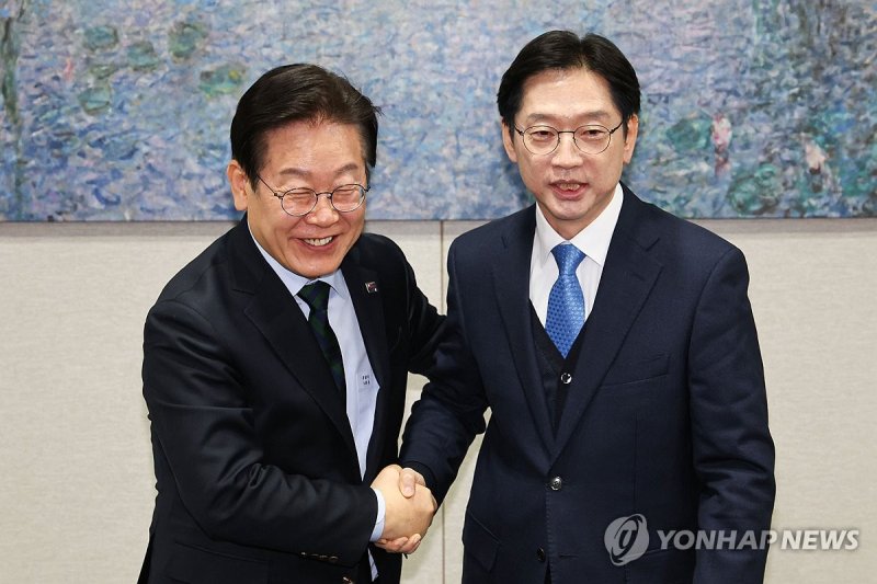 (서울=연합뉴스) 박경준 오규진 기자 = 더불어민주당 대권주자인 이재명 대표와 김경수 전 경남지사가 13일 국회에서 이뤄진 회동에서 당내 통합의 당위성에 공감하면서 계파 간 갈등의 확전은 일단 막았다는 평가가 나온다.