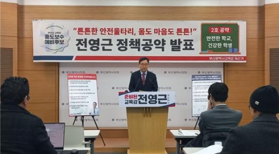 [파이낸셜뉴스] 부산시교육감 재선거에 출마한 전영근 예비후보가 "학교 안전망을 촘촘하게 구축하고 학생과 교원의 신체·정신 건강을 종합적으로 지원하는 정책을 추진하겠다"고 밝혔다.