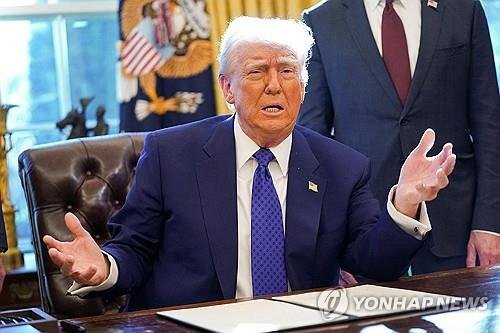트럼프 대통령은 14일(현지시간) 백악관 집무실(오벌 오피스)에서 행정명령 서명식을 하면서 취재진이 자동차 관세 도입 일정을 묻자 "아마도 4월 2일께"라고 답했다.