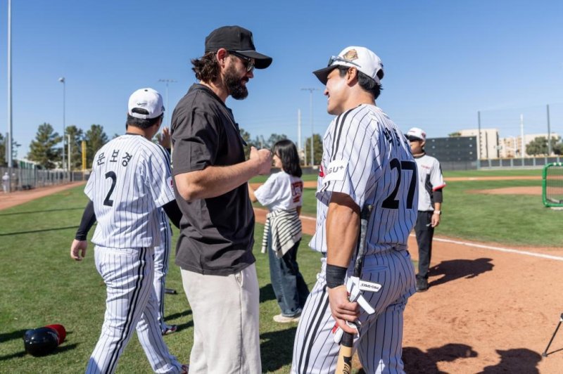 (스코츠데일[미국 애리조나주]=연합뉴스) 이대호 기자 = 프로야구 LG 트윈스의 '영원한 외국인 에이스' 케이시 켈리(35)가 지난 6년 동안 동고동락했던 LG 동료들과 재회했다.