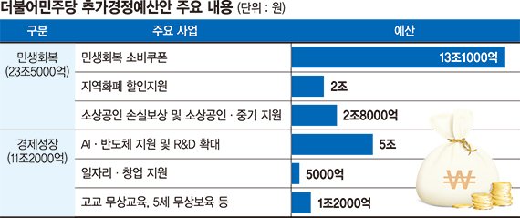 추경의 내용도 중요하다. 민주당의 추경안 35조원에는 지역화폐 예산(15조1000억원), 캐시백 지급(2조4000억원), 소비 바우처(5000억원) 등이 포함돼 있다.