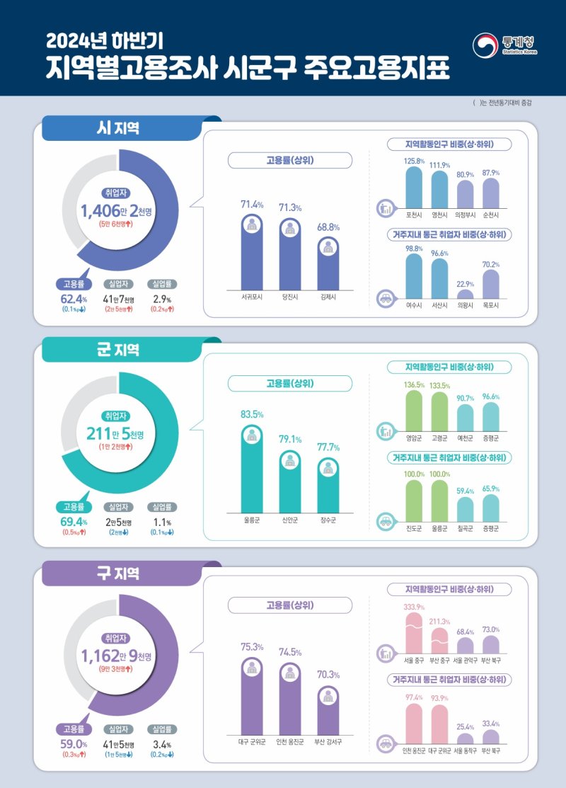 통계청, 2024년 하반기 지역별고용조사 시군구 지표 발표