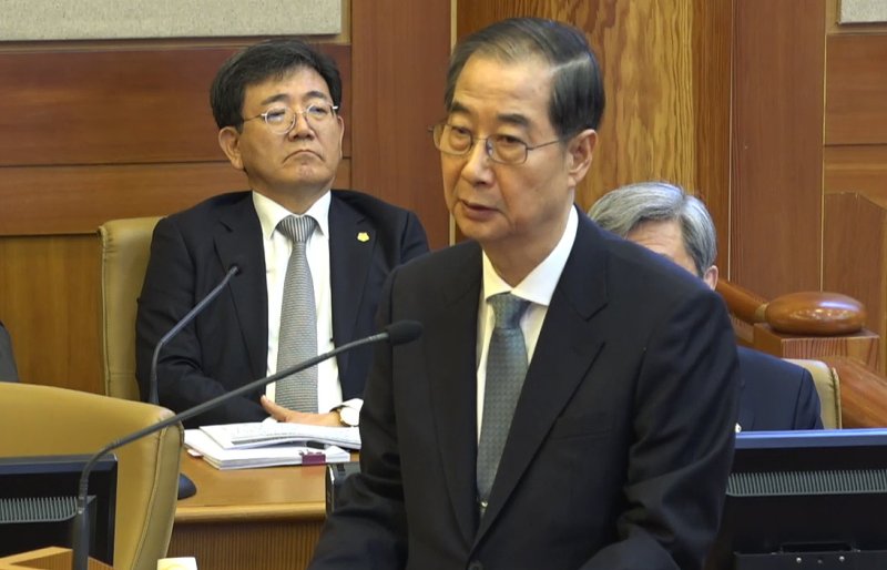 한 총리는 "계엄 선포 당일 대통령실에서 계엄과 관련된 문건을 보거나 받은 기억이 없다"고 했다. '비상계엄 선포문을 소지한 경위'에 대한 질문에도 "전혀 기억이 나지 않는다"고 말했다.