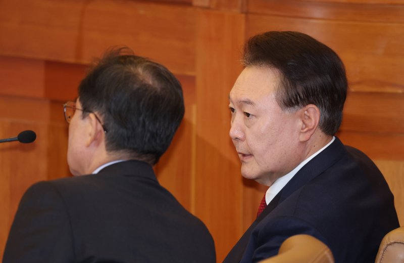 신 수석대변인은 회의를 마친 뒤 기자들과 만나 윤 대통령 최종 변론에 관한 당의 입장에 대해 "정보가 없다. 변호인단과 당이 교류한 게 없고 내일(25일)도 변호인단과 대통령이 결정할 것"이라고 말을 아꼈다.