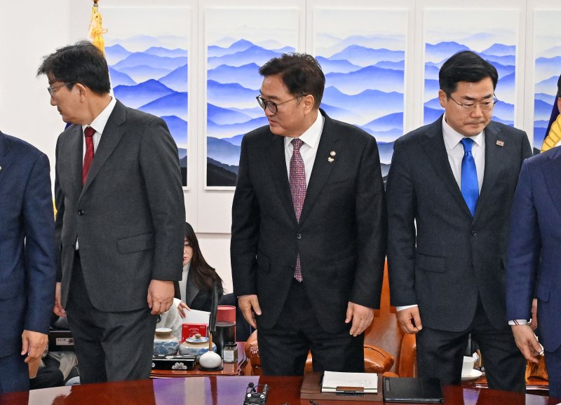 (서울=뉴스1) 한재준 기자 = 여야 원내대표가 25일 오후 우원식 국회의장 주재로 회동을 갖고 국민연금 개혁안 등 쟁점 법안 처리를 논의한다.