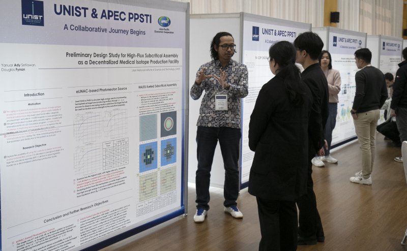 이날 연구시설 견학에 앞서 UNIST 경동홀에서 열린 세미나에선 APEC 회원국 출신 UNIST 대학원생들이 직접 홍보 부스를 설치해 연구 성과를 공유했다.