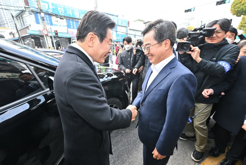 (서울=뉴스1) 원태성 기자 = 이재명 더불어민주당 대표가 28일 김동연 경기도지사와 회동을 갖는다. 지난해 11월 수원 전통시장에서의 만남 후 약 3개월 만이다.