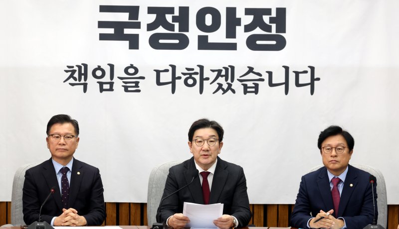 박형수 원내수석부대표는 "지금은 대통령과 대통령 권한을 대행하는 국무총리가 탄핵심판 중이라는 중요한 국가적 변수가 있는 상황"이라며 "심지어 탄핵심판 2건의 결론이 근시일내에 내려질 가능성이 크다"고 말했다.
