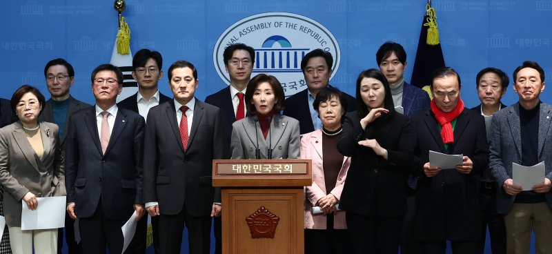 국민의힘 나경원 의원을 비롯한 의원 30여명은 이날 오전 국회 소통관에서 '헌법재판소의 헌정질서·법치주의 수호 및 사회안정·국민통합을 위한 헌법·법률·양심에 따른 공정한 평의 촉구 탄원' 관련 기자회견을 열었다. 해당 내용을 담은 탄원서에는 총 76명의 의원이 서명했다.