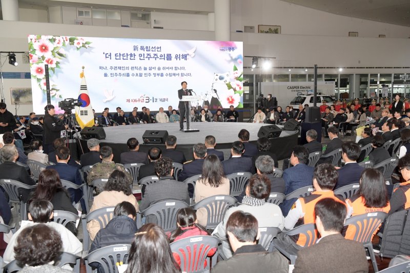 (광주=연합뉴스) 천정인 기자 = 광주시는 1일 제106주년 삼일절을 맞아 시청 1층 시민홀에서 내외빈 200여명이 참석한 가운데 기념식을 열었다.