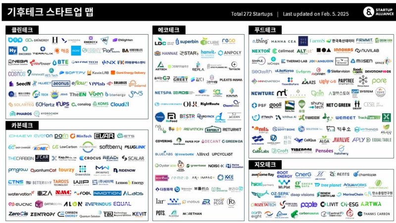 스타트업얼라이언스가 자체 집계한 바에 따르면 지난달 기준, 국내 기후테크 스타트업은 총 272개이다.