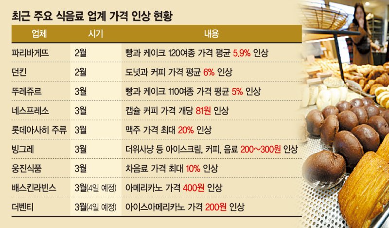 식음료 업계 1주일새 도미노 인상