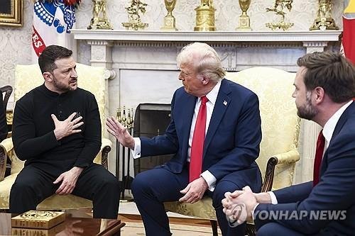 (워싱턴=연합뉴스) 조준형 강병철 특파원= 도널드 트럼프 미국 대통령은 자신과 볼로디미르 젤렌스키 우크라이나 대통령 간 갈등 속에 미궁에 빠진 양국 간의 '광물 협정' 체결에 다시 나설 것임을 시사했다.