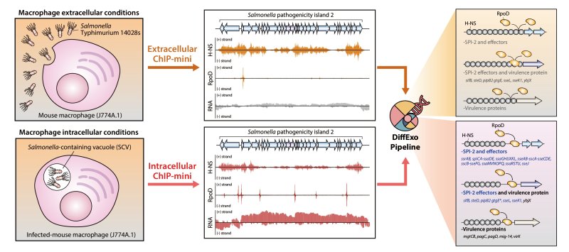 공동연구팀은 숙주에 감염을 일으킨 극소량의 살모넬라균을 분리해 균 내부에서 일어나는 두 가지 특수 단백질(H-NS, RpoD)의 DNA 결합 위치와 강도 변화를 정량적으로 분석해 냄으로써 ChIP-mini의 성능을 입증했다.