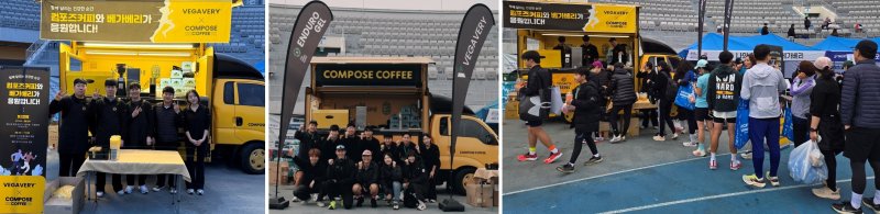 컴포즈커피는 베가베리와의 협업으로 행사장 내 커피트럭을 지원하고, 대회 참가자와 관계자들에게 커피 음료를 무료로 제공하며 대회 열기를 더욱 뜨겁게 달궜다. 자신의 한계를 뛰어넘는 참가자들의 도전정신을 응원하는 의미에서 아메리카노, 레몬에이드, 자몽에이드 등 컴포즈커피의 인기 음료를 무료로 제공했다.