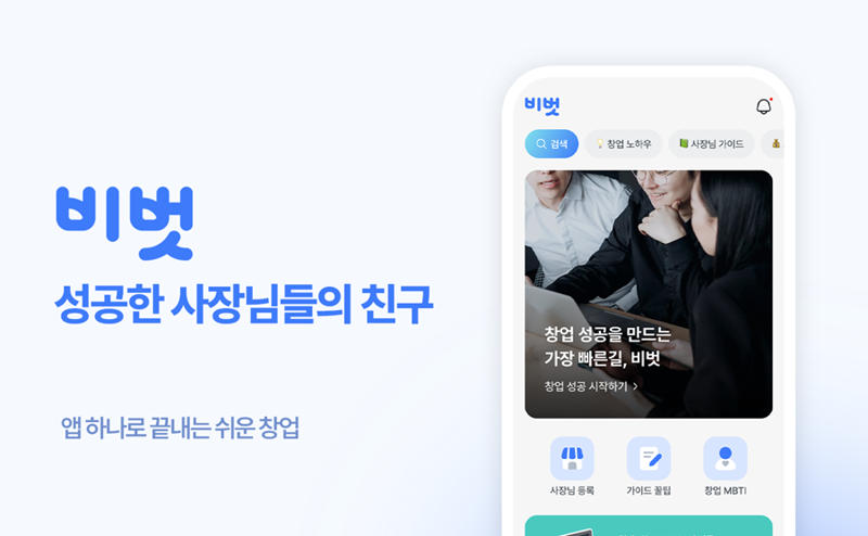 온·오프라인 및 업종에 관계없이 창업의 전 과정을 지원하는 비즈니스 앱 ‘비벗’의 가장 큰 강점은 창업 과정에서 발생하는 모든 업무와 일정을 맞춤형으로 관리할 수 있다는 점이다. 앱 가입 후 간단한 창업 계획서만 작성하면 사업자 등록부터 계좌 개설, 내외부 인테리어, 보험, 방역까지 놓치는 부분 없이 꼼꼼하게 일정 확인이 가능하고, ‘창업 알림톡 서비스’를 통해 해야 할 업무를 단계별로 안내 받을 수 있다.