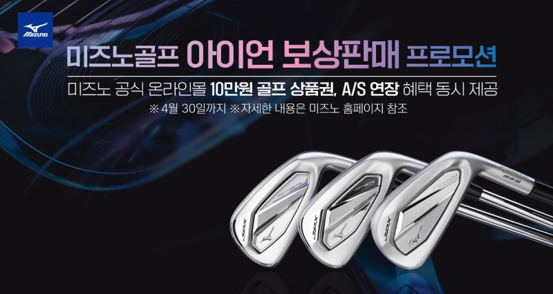 보상 판매 행사 때 아이언을 산 고객에게는 미즈노 공식 온라인몰 10만원 상품권과 AS 1년 연장 혜택을 준다.