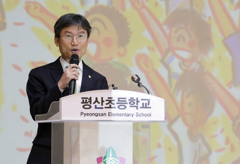 천 교육감은 입학식에서 '틀려도 괜찮아'라는 동화를 학생들에게 읽어줬다.